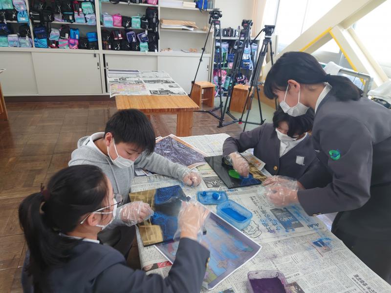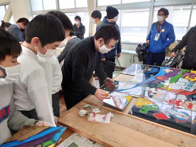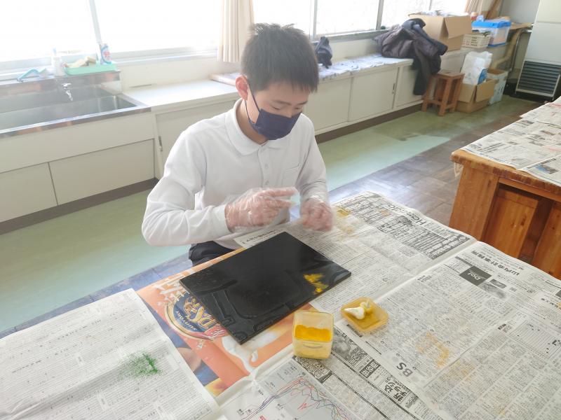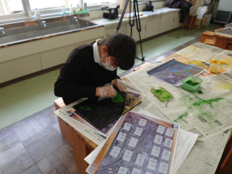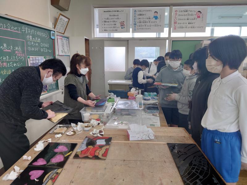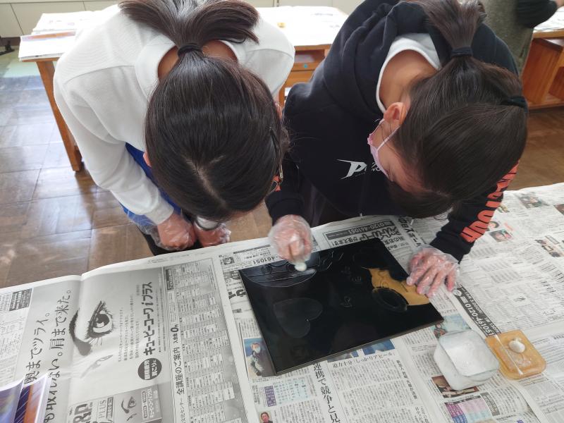 28日(月)の午後、卒業制作のパネルに色を入れる作業を行いました。6年生は、前古孝人先生と奥様のご指導のもと、粘り強く丁寧に作業を進め、ついに色入れの作業を完了することができました。出来上がった作品はとてもきれいで児童も満足のいく仕上がりとなっていました。完成した時の6年生の表情がとても印象深かったです。