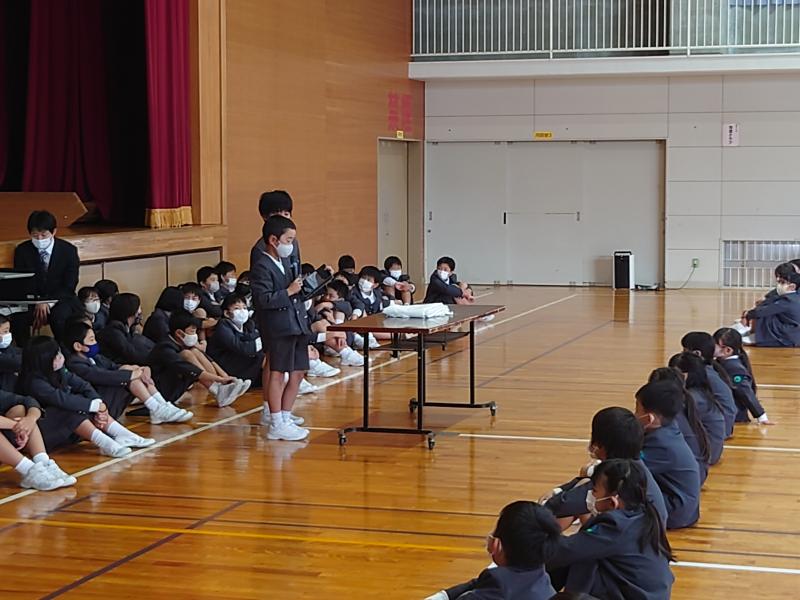 4日(木)5限目に、全校集会がありました。今回の全校集会では、いしかわっ子駅伝交流大会、そして、輪島市民剣道大会で団体や個人の部で入賞を果たした児童の表彰を行いました。日々の練習の成果です。よく頑張っています。