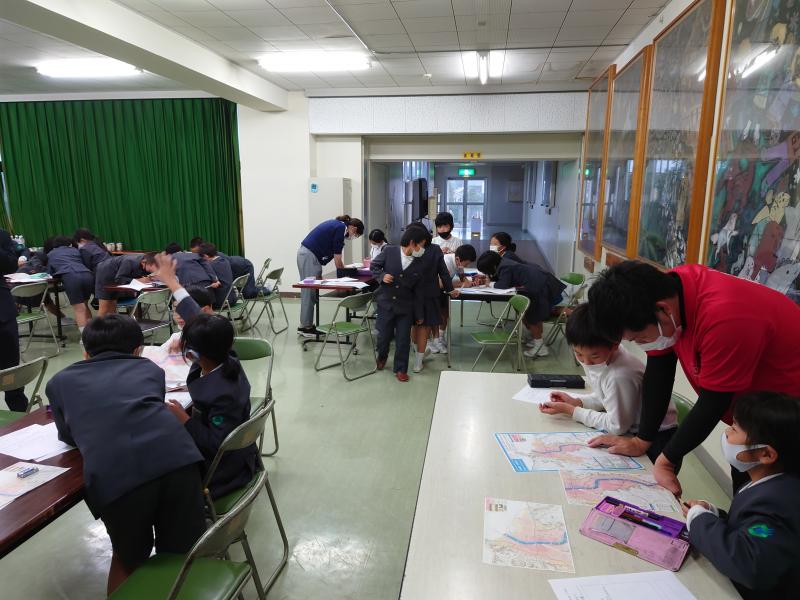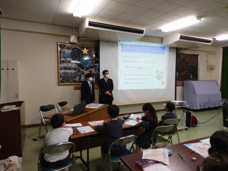 9日(火)5・6限目に、3年生が防災学習を行いました。今回は、輪島市役所防災対策課の方2名にお越しいただき、輪島市の避難所や備蓄、防災対策について学習しました。ハザードマップをもとに、災害が起きた時にどこに避難すればよいか考えたり、避難する時に注意することなどについてお話を聞いたりしました。子供たちは熱心に学習に取り組み、自分たちの避難所となる場所を見つけ出したり、お話の大事な部分をメモしたりできていました。防災対策課の皆様、お忙しい中、子供たちに貴重なお話をしていただき、ありがとうございました。