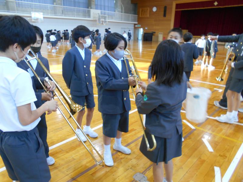 15日(月)6限目に、4~6年生で金管鼓隊の楽器紹介が行われました。いよいよ4、5年生による新金管鼓隊がスタートします。4,5年生児童は、これまで見ることしかできなかった憧れの楽器を拭いたり、旗を振ってみたりしながら、希望するパート選びに真剣に取り組んでいました。後日、パートごとのオーディションを行い、それぞれの担当を決定した後、いよいよ金管鼓隊引継ぎ式が行われ、本格始動となります。新たな伝統の担い手として、ますます活躍してくれることと期待しています。