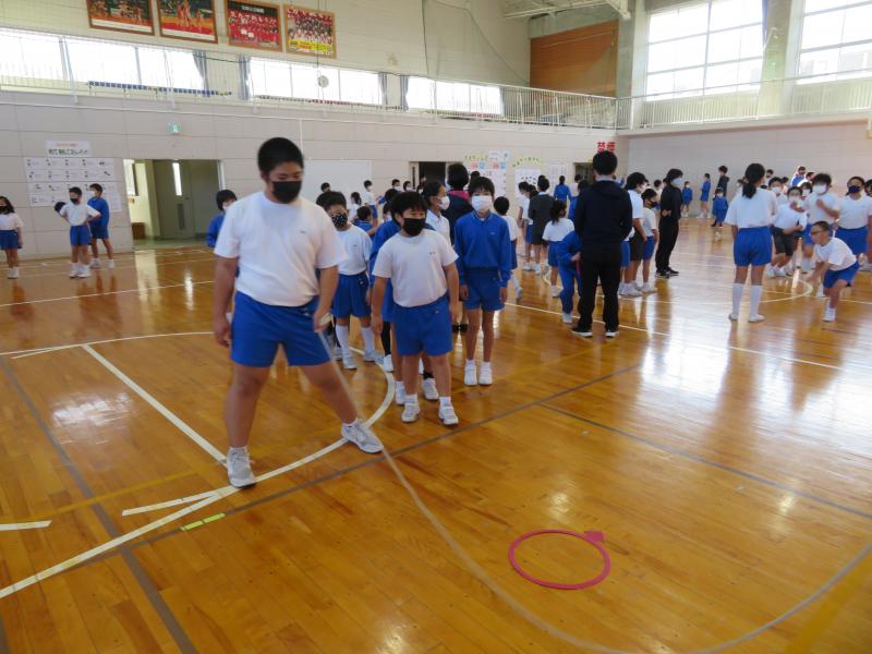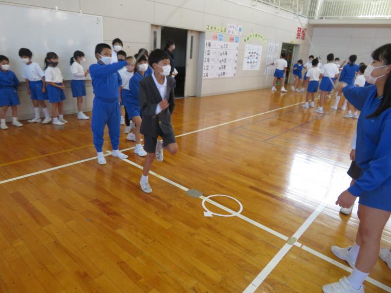 16日(火)のぐんぐんタイムを活用して、12月に行われる「縦割り8の字跳び大会」に向けた練習会を全校で行いました。8の字跳び大会は、12の縦割り班に分かれて、班ごとに3分間で跳べた回数を競います。初めての練習会でしたが、声を出してリズムをとったり、苦手な子を励ましたりして、6年生を中心に上手に練習に取り組んでいました。みんなで跳べた時には大きな歓声があがっていました。