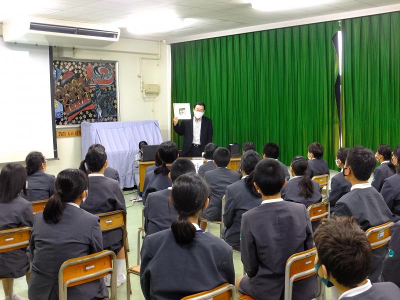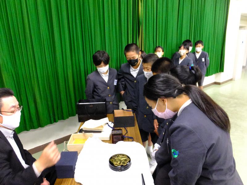 前古さんからは、卒業制作や卒業記念品づくりにおいては、絵の綺麗さや構図のうまさよりも、作品にどんな思いを込めて作るのかが重要であると学ぶことができました。また、卒業制作のパネルが出来上がるまでには、木地づくりや上塗り、下地づくりの職人さんなどたくさんの人の手がかかっており、感謝の気持ちを忘れずに作品づくりに取り組む大切さも学ぶことができました。前古さんは、子どもたちのために、人間国宝の前大峰先生の作品も持ってきてくださいました。本物の美しさに触れることで、さらに作品づくりへの思いを強くすることができました。本当にありがとうございました。