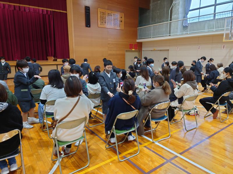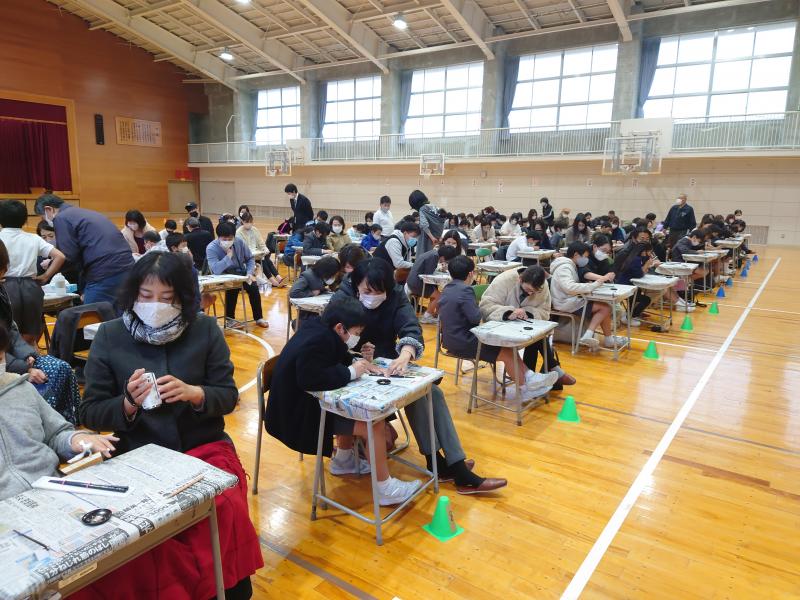 また、蒔絵体験の後には、二分の一成人式を行いました。4年生児童は、日頃の感謝の気持ちを言葉とお手紙で伝えました。最後には、心を込めた歌のプレゼントもありました。体育館に響く声はとても感動的でした。心に残る親子ふれあい活動となりました。蒔絵組合様、素敵な体験をありがとうございました。保護者の皆様も大変足元の悪い中、ご参加いただきありがとうございました。学年委員、PTA役員の皆様、ご準備等本当にありがとうございました。