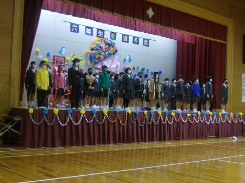 2月19日(金)の13:15より6年生を送る会が開かれました。今年の送る会は、新型コロナウィルス感染防止の為、観覧を6年生の保護者の皆様に限定させていただきました。