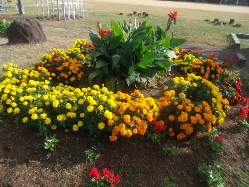 本校のプール側にある、円花壇に植えてある花が大変きれいに咲いています。ご来校の際、ぜひご覧ください!