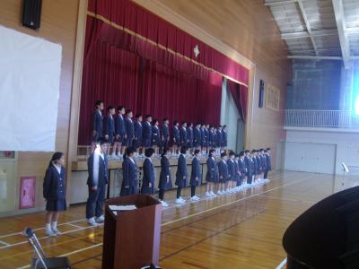 11月13日(金)の14:00から、河井・鳳至・大屋小共催で、合唱交流会が開かれました。参加したのは、河井小5年生、鳳至小5年生、大屋小4・5年生です。初めに「にじ」を全員合唱で歌いました。次に、合唱発表です。曲目は、河井小は、校歌と「A whole new world」、大屋小は、校歌と「リメンバーミー」、鳳至小は、校歌と「宿命」を披露しました。どの学校も、交流会に向けて練習を積み重ねてきた成果を披露することができました。次に、各学校代表2名ずつ感想発表が行われ、それぞれの思いを話すことができました。最後に、合唱指導で大変お世話になりました仲谷響子先生に感謝の言葉と花束を贈呈し合唱交流会を閉めました。