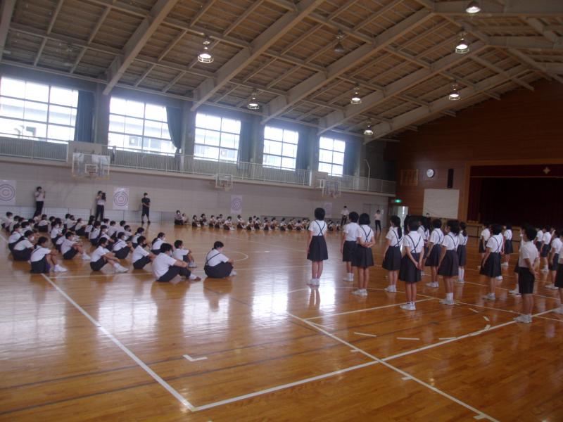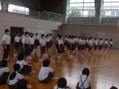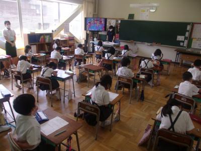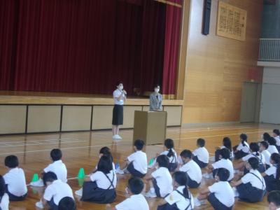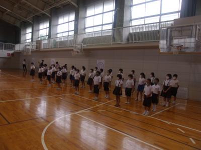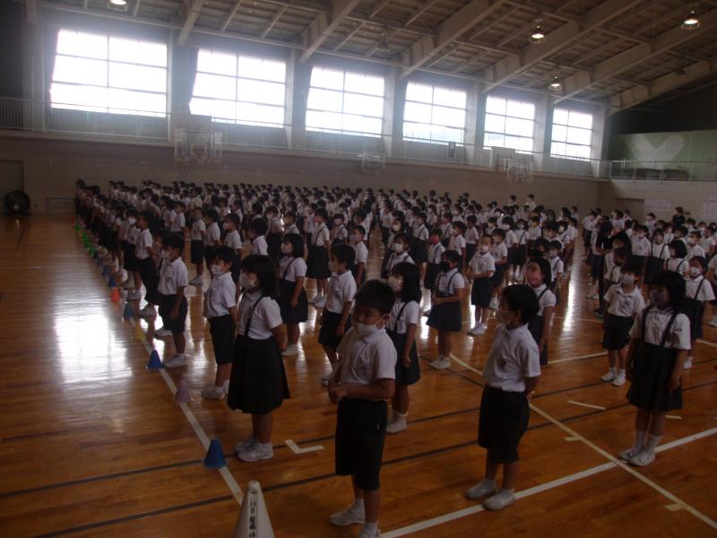 8月7日(金)に、1学期の終業式を行いました。終業式では、新型コロナウイルス感染症の感染防止のため、子どもたちの間隔を広げ、窓の開閉と大型扇風機4台を使用し換気の確保に努めての終業式でした。式では、学校長より1学期をふりかえっての「子どもたちのがんばり」についてや「新型コロナウイルス感染症の感染防止」についてのお話がありました。お話では、子どもたちの頑張る姿がすばらしかったことが伝えられ、子どもたちは、とても満足気な笑顔を見せていました。短い夏休みですが、思い出に残る、凝縮された9日間になることを願っています。1学期、保護者の皆様には、学校へのご支援と共に感染対策についてもご協力いただき本当にありがとうございました。2学期も、どうぞよろしくお願いします。