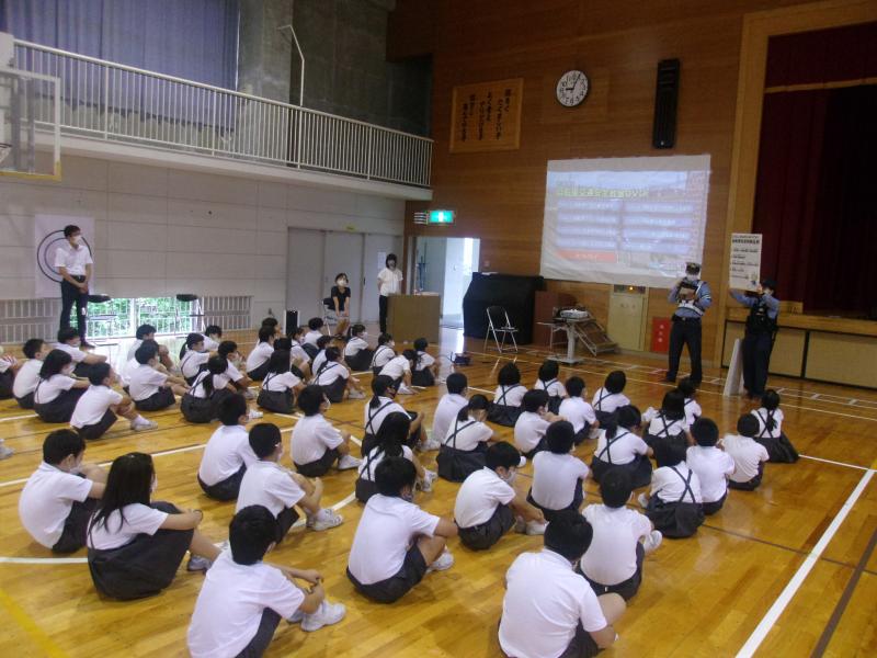 7月22日(水)3限目に不審者対応避難訓練を行いました。不審者に対応する避難訓練は、輪島警察署生活安全刑事課の皆様にご協力を頂き行っております。