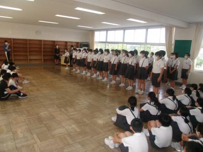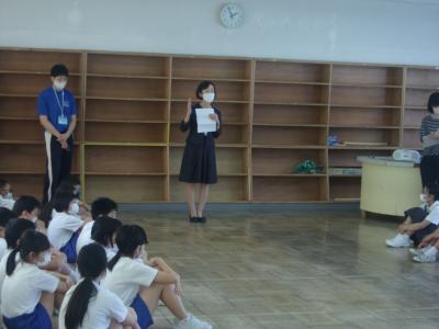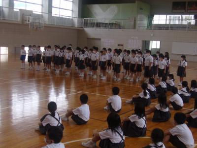 7月1日(水)13:30より、全校集会が開かれました。今日は、各委員会からのお知らせ、6年生からのお知らせ、代表委員会からのお知らせ、2年生の学年発表、校長先生のお話というプログラムでした。