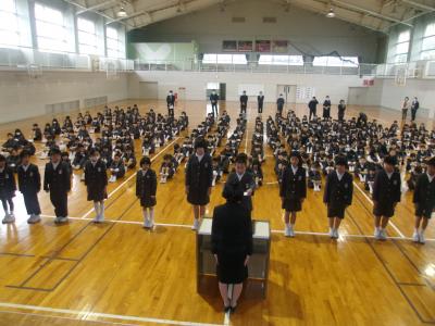 4月13日(月)に児童会の任命式が行われました。任命式に先立って、集会での児童の心構えを6年生が考え,