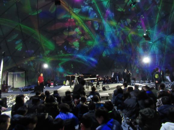 初めに、「銀河鉄道の夜」が上映され360度映し出される映像に子どもたちは、歓声をあげていました。あの映像と迫力には、驚きました。次にピアノデュオ「鍵盤男子」が映像とともにクラッシクやヒット曲を演奏し、子どもたちも大きな声で歌うなど大盛り上がりでした。冬の午後に、心が温かくなる時間でした。