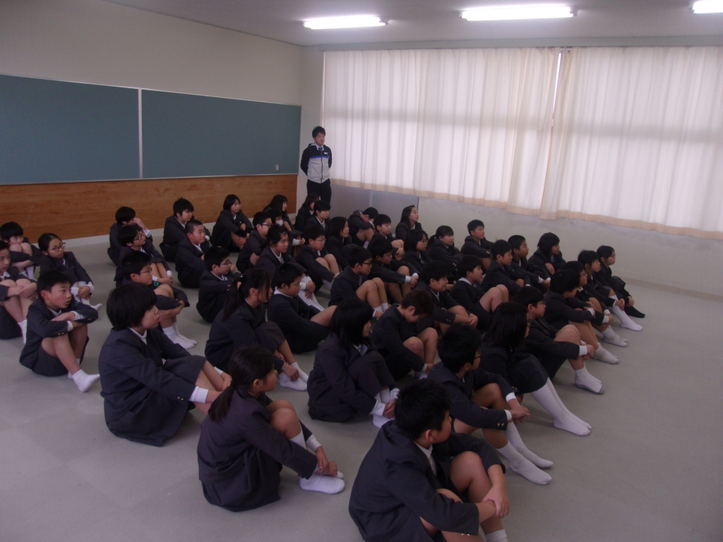 2月13日(木)の5限に6年生が輪島中学校体験授業へ行って来ました。教科は、英語科。輪島中3年1組の教室で、久田教諭・前坂教諭の授業でした。授業は、All Englishで行われ、先生からは日本語は発せられません。子どもたちは、英語を聞き取り大変スムーズに動いていました。発音や筆記、ゲームもあり、とても楽しい時間を過ごしました。子どもたちは、4月からの中学校生活を夢見て、ワクワクしているようにも見えました。