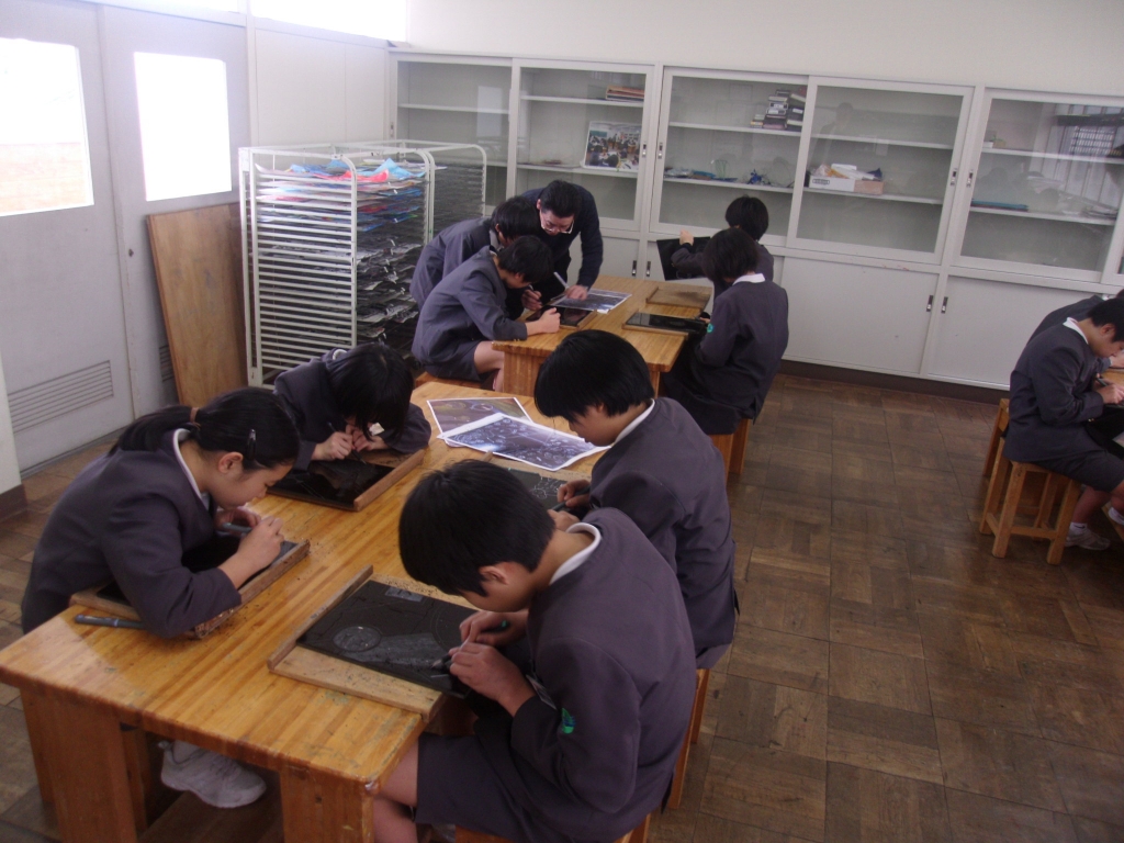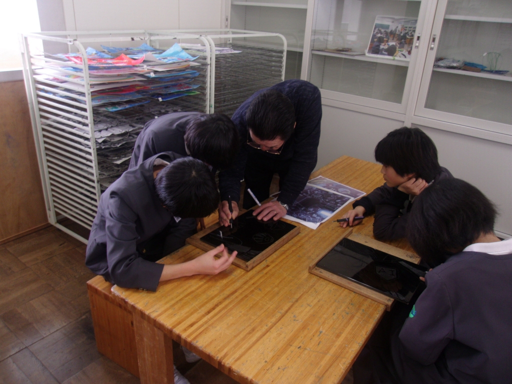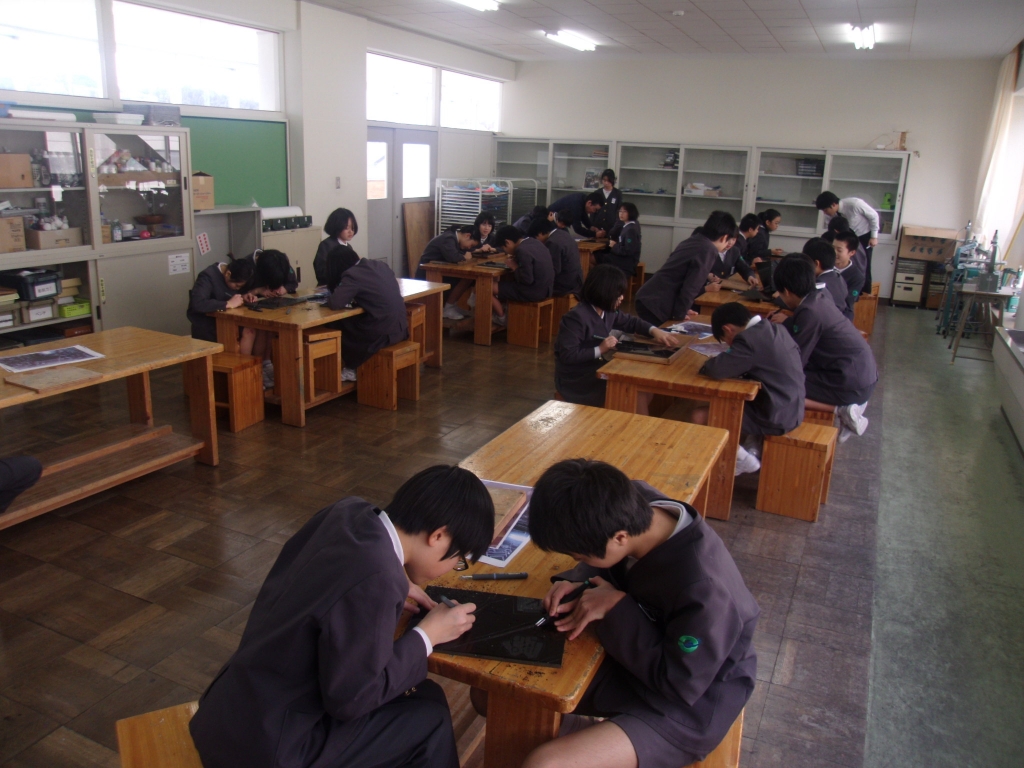 2月に入り、6年生は、卒業式が近づいてきました。この時期と言えば、そう伝統の河井小学校卒業制作の時期でもあります。6年生は、輪島塗沈金師 前古孝人先生指導の下、熱心に制作に取り組んでいます。小学校生活の思い出や思い描いた未来を1枚のパネルに表現していきます。今年は、どんな卒業制作になるでしょうか。今からとても楽しみです。頑張れ6年生!