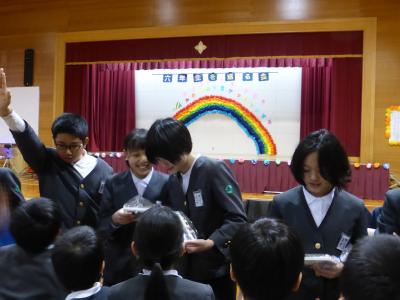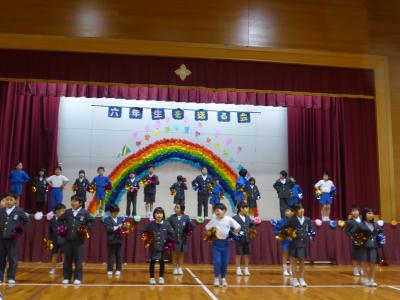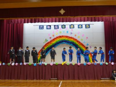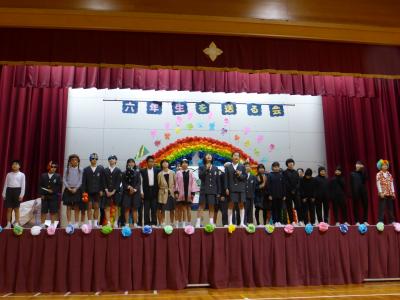 2月21日(金)6年生を送る会がありました。1年生:「くじらぐも」、2年生:「河井の刃」、3年生:「ランプの魔人」では、各学年が素晴らしい表現をし、4・5年生:「校歌」は、6年生から受け継いだ金管鼓隊で校歌を見事に演奏しました。どの出し物も、6年生を心から応援している気持ちが伝わってくる内容のものばかりでした。
