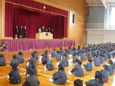 本日は、修了式と離任式が行われました。体育館の式でも、児童それぞれの間隔が保たれ、換気も行いました。また校歌斉唱を1番だけにするなど、できるだけ短くしコロナウイルス感染防止の対策を行いました。