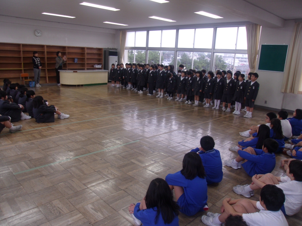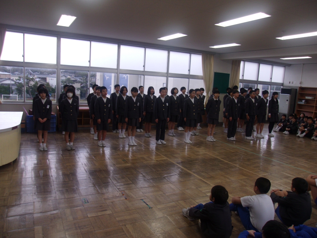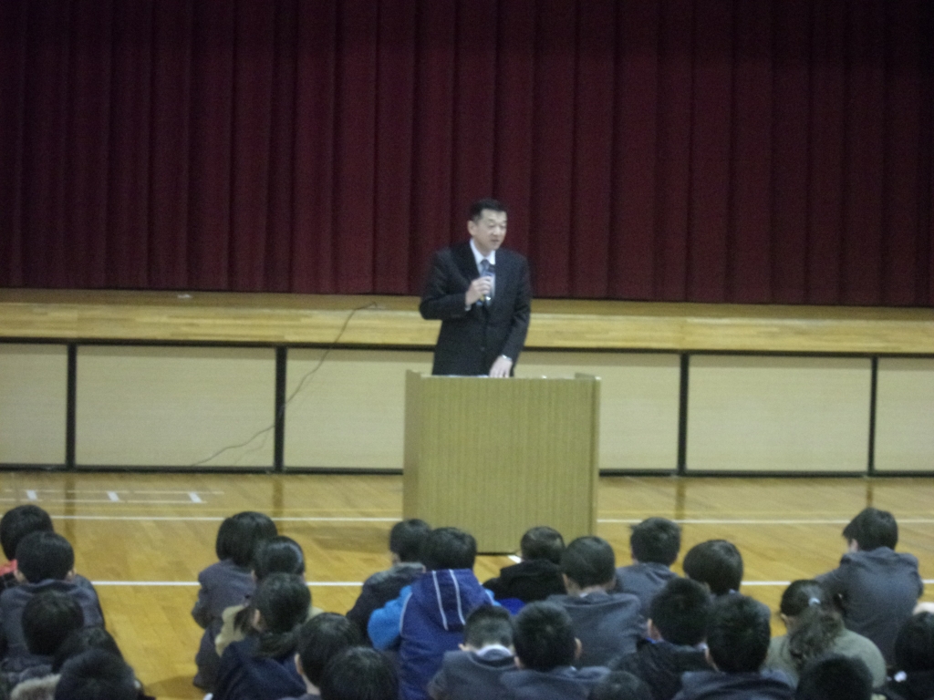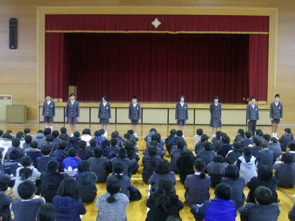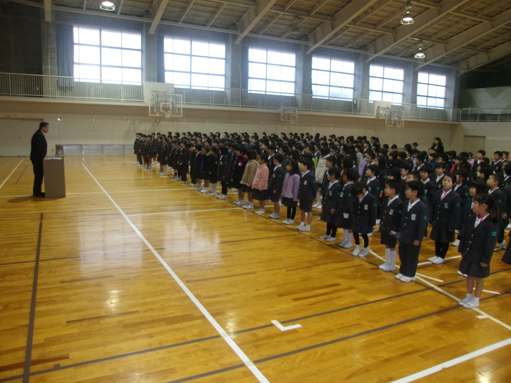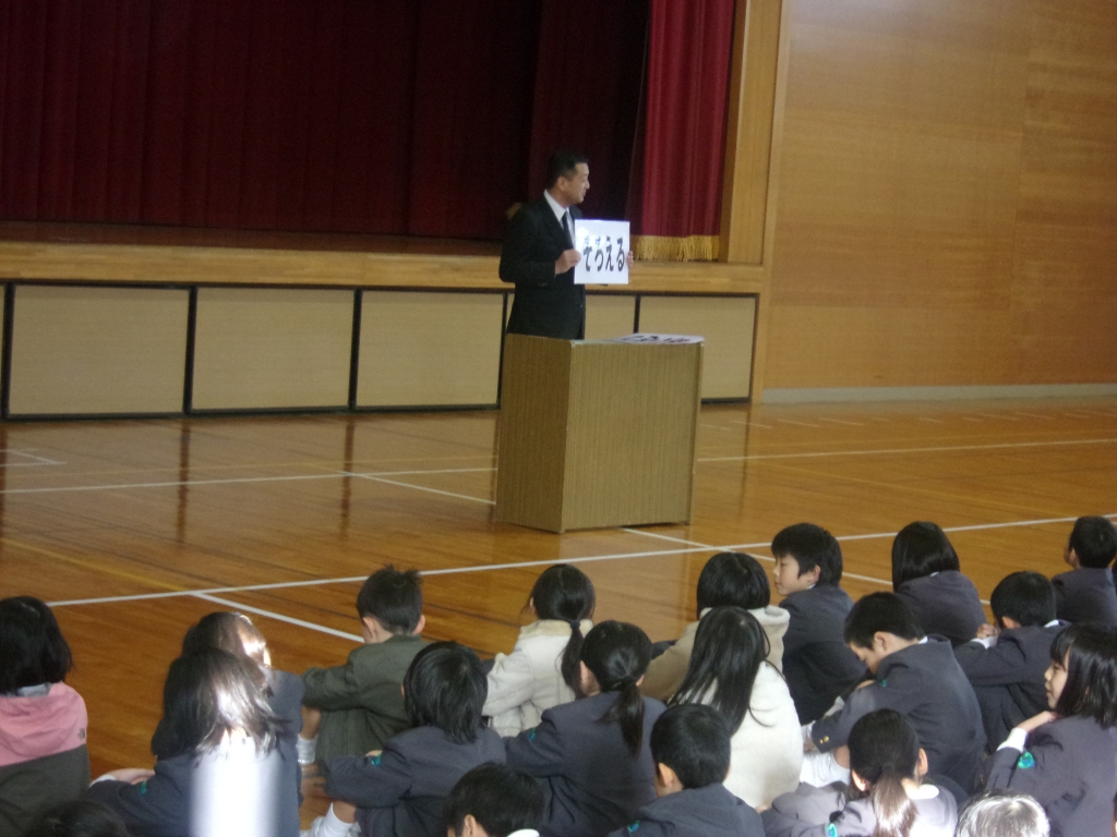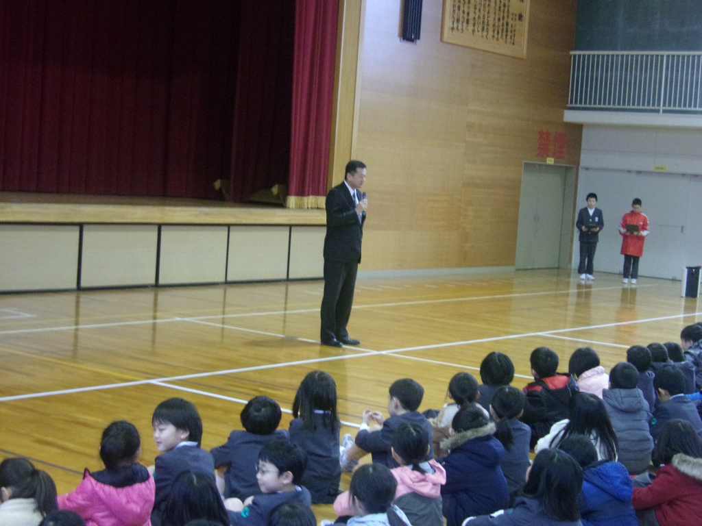 終業式では、校長先生から、2学期の初めに話された「やさしく」「話を聴く」「あいさつ」「そろえる」についてのふりかえりや2学期に頑張ったこと、3学期に向けて期待することについてのお話がありました。