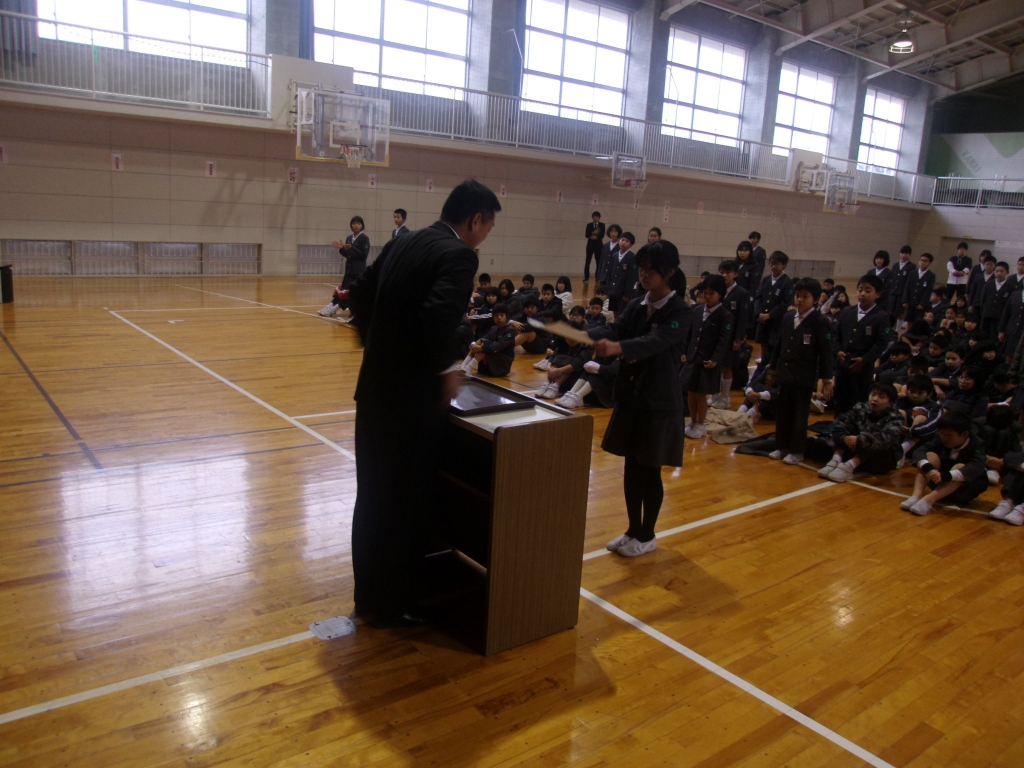 12月24日(火)今日は、2学期最後の日です。年末恒例の大掃除のあと、表彰式そして終業式が行われました。