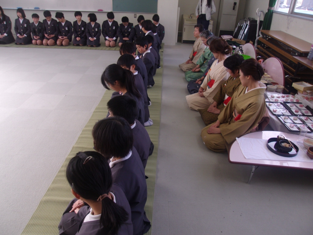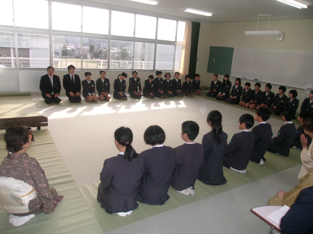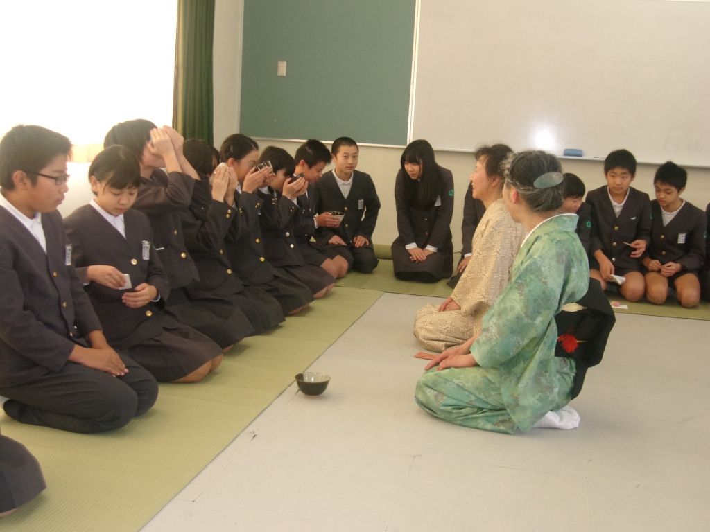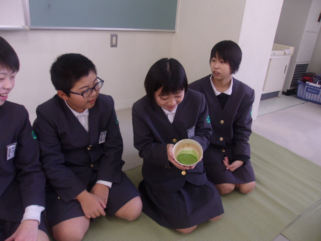 1月22日(水)の5限に6年生は、日本の伝統文化体験ということで裏千家茶道を体験しました。