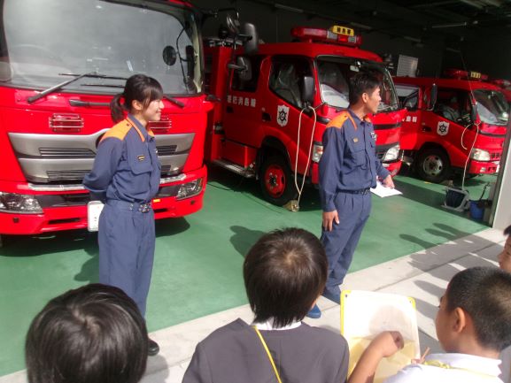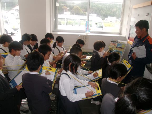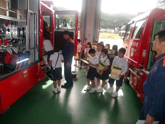 輪島消防署の松田さんが出迎えて頂き、学習した内容を実際に見て確認することができました。なかなか見る事ができない場所も子どもたちは見学し、松田さんの説明を熱心にメモしながら、学習を深めていきました。教科書では、わからない実際の雰囲気を感じることが出来て、子どもたちには本当に貴重な経験になりました。やはり本物を見ることは、大事ですね。