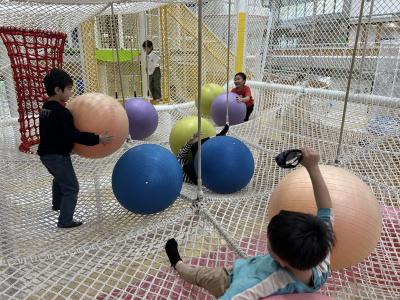 室内には大きな遊具がたくさん!みんなで楽しく遊びました。