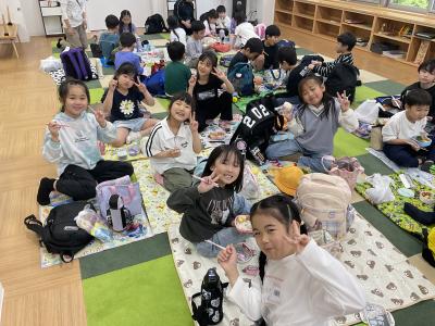 お待ちかねのお弁当!あいにくの雨でしたが、子どもたちの笑顔がたくさん見られた1日でした。