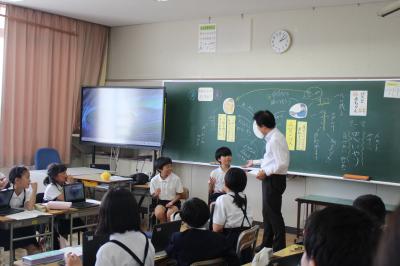 2日、能美市の株式会社日本海開発の南さんをお招きして、5,6年生がSDGs学習をしました。