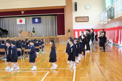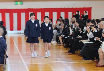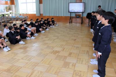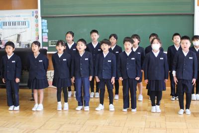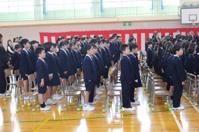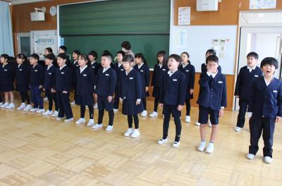 どの児童も胸をはり、指先まで伸ばし、今日の式への意気込みが感じられました。