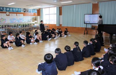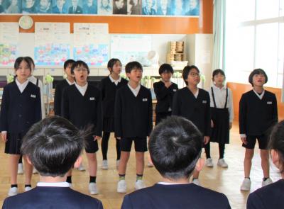 最後に、4年生は教えてあげたこと、2年生は教えてもらったことに気を付けて、一緒に歌います。