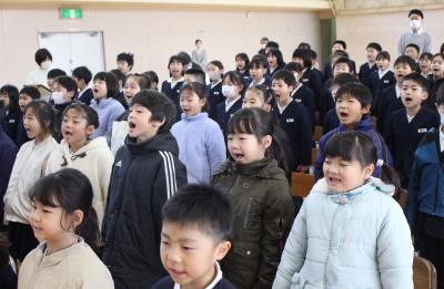 どの学年も卒業生に思いが届くよう、しっかり口を開けて歌っていました。