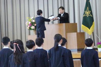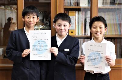 6年1組の代表3人に賞状を授与しました。