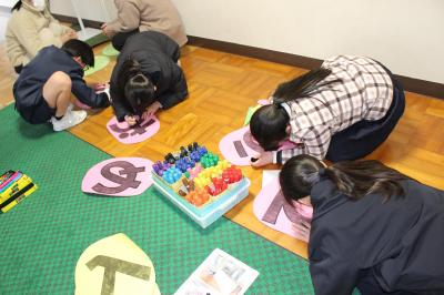 字と絵のバランスを考えながら、飾りつけしています。