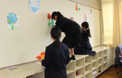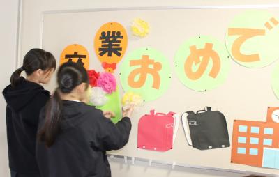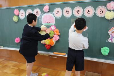 6年生の教室を飾りつけしています。