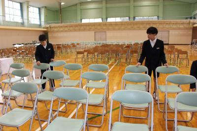 卒業生の座る椅子をきれいに並べています。