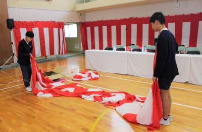 5年生のおかげで、卒業式の準備が整いました。