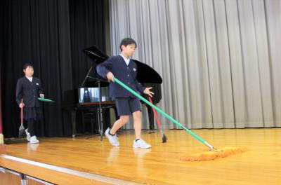 舞台もきれいにモップがけしています。