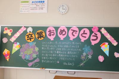 6年生教室には、担任からの心のこもったメッセージが書かれていました。