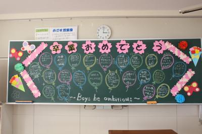 今回は、昨日紹介しきれなかった卒業式当日の掲示物などを写真で紹介します。5年生が中心となって準備しました。