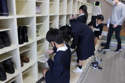 午後から、3年生がくつ箱の掃除を行っていました。