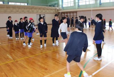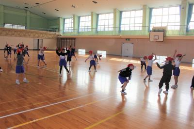 体育の時間や休み時間などをつかって、学校中で練習に励んでいます。