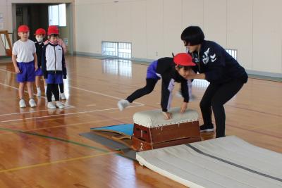 先生が、一人一人跳ぶときに、手で支えてくれます。
