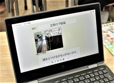 この児童は、児童玄関の下駄箱の角に頭をぶつけるかもしれないので、カバーをつけるという改善策を考えました!