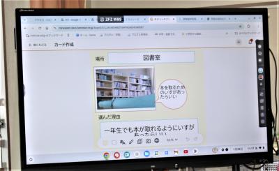 3階では、図書室について、本だなの高い所の本が取りにくいので、1年生でも取れるように、いすがあったらいいという考えが書いてありました。