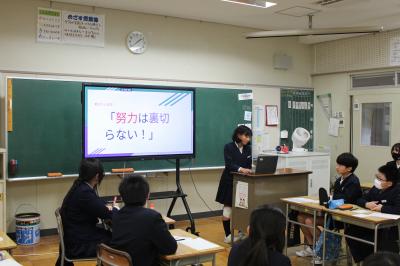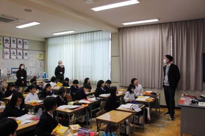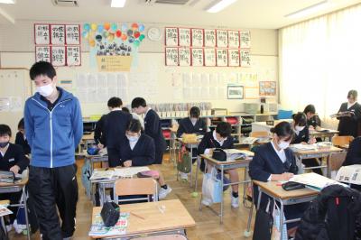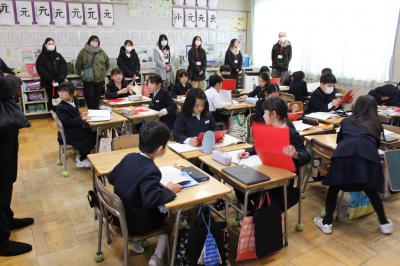 今日は、今年度最後の授業参観が行われました。足元の悪い中、たくさんの保護者の方が参観に来てくださいました。