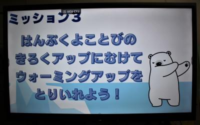「ミッション3」は、今年度、全校で取り組んでいる反復横とびの記録をアップさせるために、ウォーミングアップを取り入れよう!です。