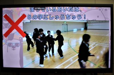 「8の字」跳びの時に、気を付けることを呼びかけています。