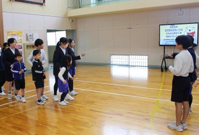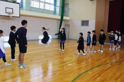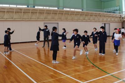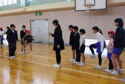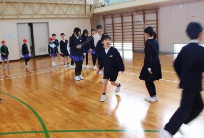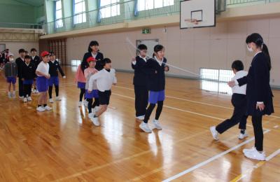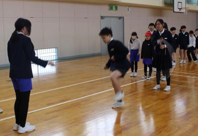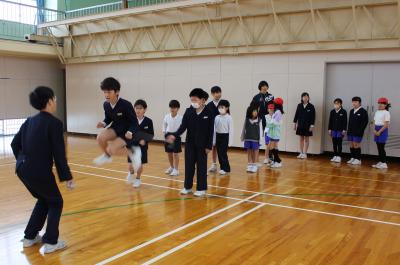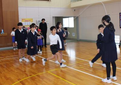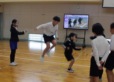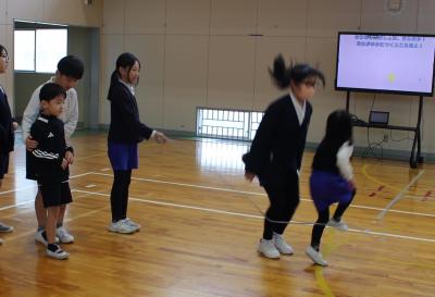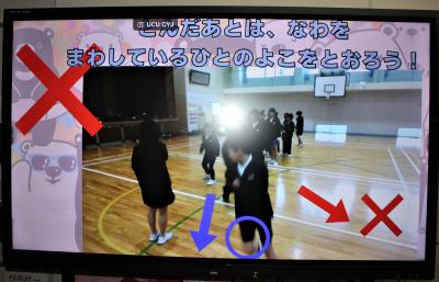 6年生が実際に「8の字」を行い、体育委員の動画に協力してくれました。