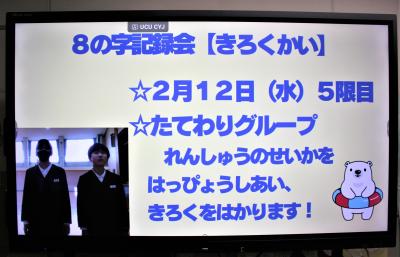 旬間の取組について、職員室前の電子黒板でお知らせしています。