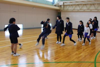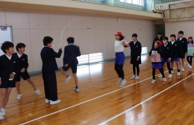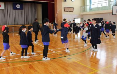 冬の体力づくりとして、運動不足になりがちな冬期間、体力作りの一環として、全校で昼休みや体育の時間に「8の字跳び」に取り組みます。