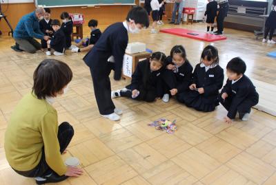 1年生は、生活科の時間に、「昔あそびの会」を開きました。