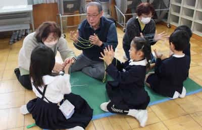 あやとりを教えてもらったり、2人あやとりで一緒にとり合ったり、楽しそうです。